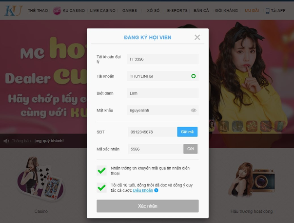 Mã đại lý: Bạn điền mã của Kubet FF3396. Điền đúng mã đại lý mọi người sẽ nhận được hỗ trợ và khuyến mãi tốt nhất của web Kubet. Nếu điền sai hoặc bỏ trống thì sẽ mất nhiều quyền lợi như khuyến mại, quà tặng,…